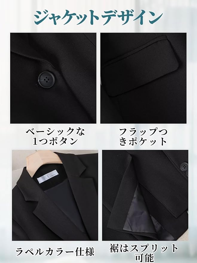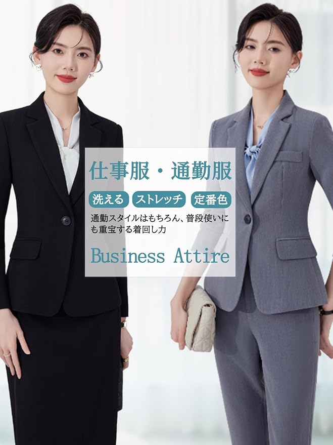 【マルチシーン対応】セットアップ(2点セット)で通勤・オフィススーツから、入学式・卒業式・入園式・面接・冠婚葬祭まで幅広く活躍。20~50代対応のシンプルデザインは、春・秋・冬のフォーマルシーンで品格を発揮。単品での着回しも可能です。
