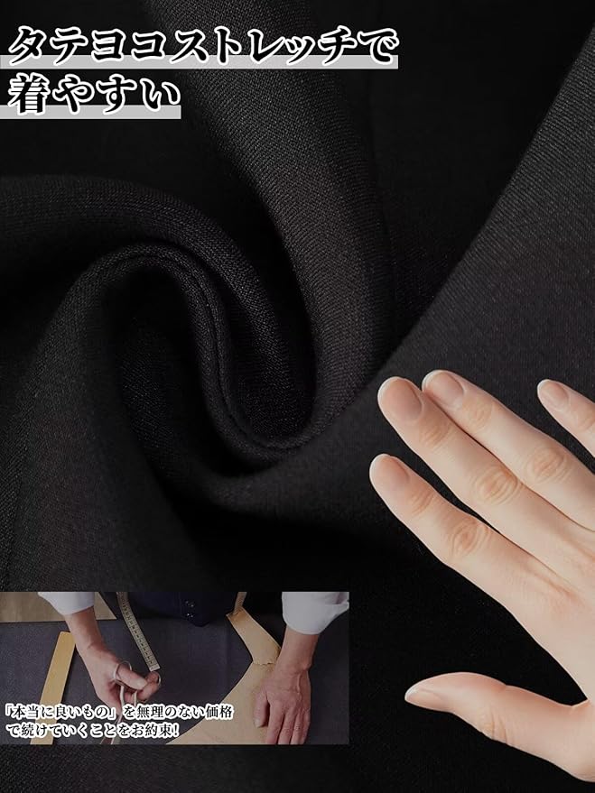 【快適な着用感】ポリエステル スパンデックス混紡素材が柔らかな肌触りと適度な伸縮性を実現。通気性に優れ夏は涼しく、保温性で冬も快適。裏地付きジャケットとゴムウエストパンツが動きやすさをサポートし、通勤や長時間着用でもストレスフリーです。