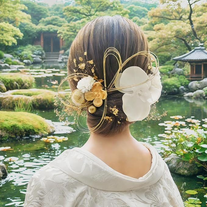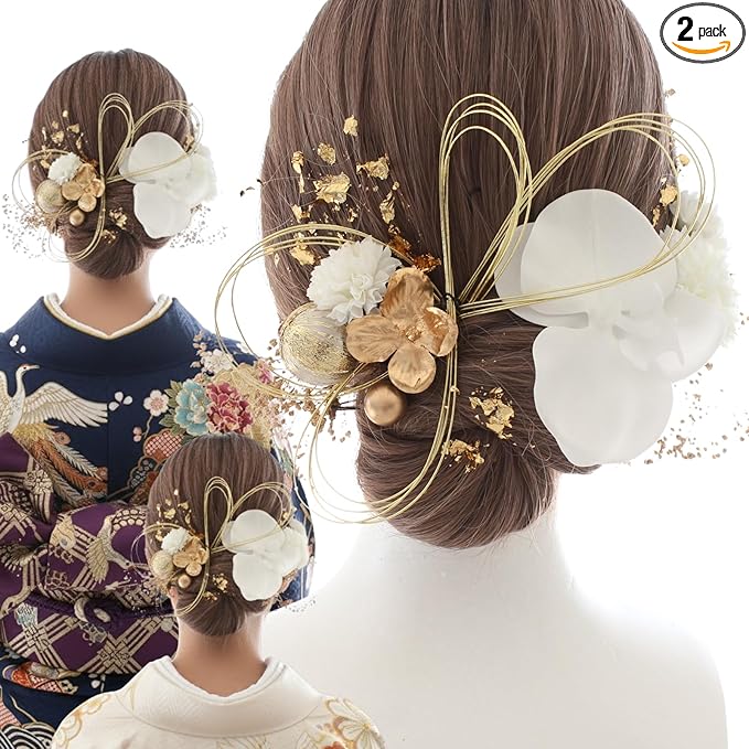 【上品な印象のヘアアクセサリー】 繊細な花モチーフと落ち着いた色合いを組み合わせた、上品な印象のヘアアクセサリーです。成人式や前撮り、卒業式などの特別な日の装いに合わせやすく、和装・洋装を問わずさまざまなシーンでご使用いただけます。