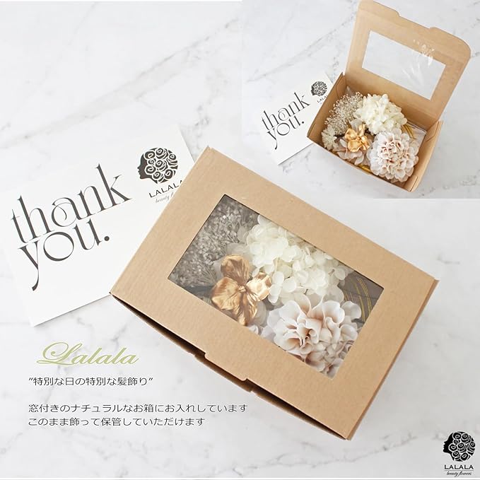 【オリジナルデザイン】 LALALA beauty flowersの髪飾りは、専属デザイナーが一つひとつのディテールにこだわり、洗練された美しさを追求して創り上げています。トレンドを取り入れながらも流行に左右されない上品なデザインで、日常から特別な日まで、装いにさりげない華やかさを添えます。大人の感性に寄り添う、LALALA beauty flowersならではのスタイルをお楽しみください。