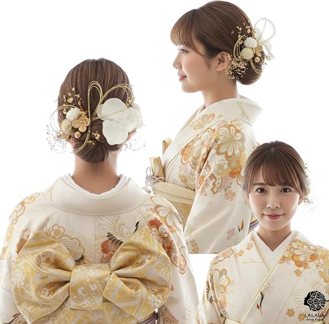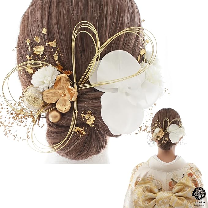 [LALALA beauty flowers] 成人式・卒業式に映える 華やか髪飾り (胡蝶蘭シリーズ) 振袖 七五三 花火大会 二十歳の集い ハンドメイド (ホワイト) 2410ch