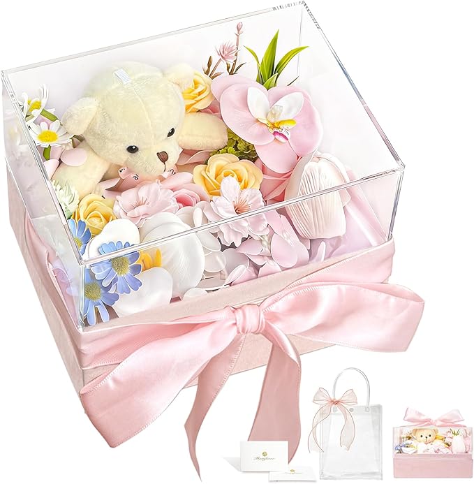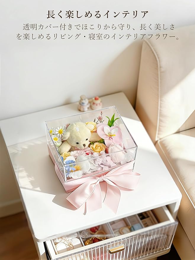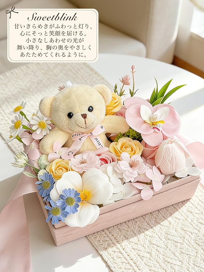 Fiorifiore ソープフラワー くま ボックス バラ 造花 ギフト 小熊付き 枯れない花 石鹸花 女性 プレゼント 誕生日 母の日 記念日 結婚祝い (Sweetblink)