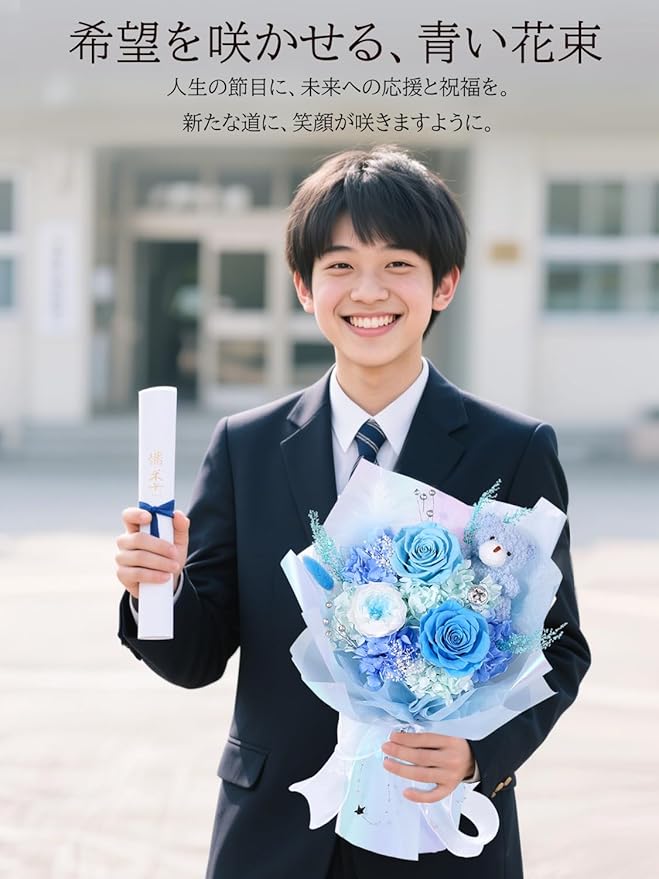【プレゼントにおすすめ】卒業式、誕生日、記念日、母の日、父の日、結婚記念日、バレンタイン、ホワイトデー、クリスマス、発表会など、特別な日に贈るプレゼントとして最適です。花束は手提げ付きのギフトボックスに入れて、どこでも簡単に持ち運べ、贈る瞬間の感動をそのままに届けることができます。
