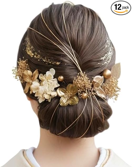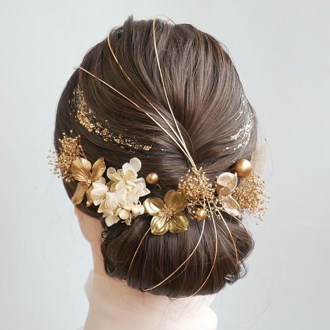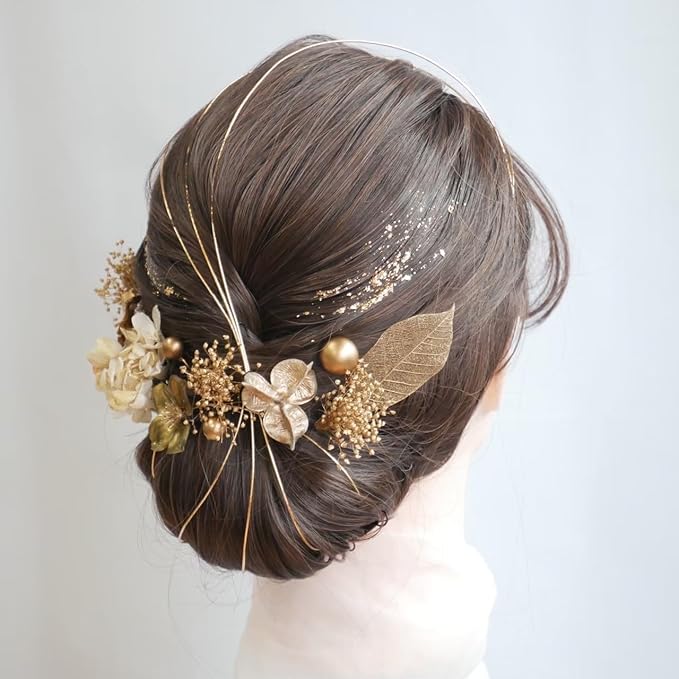 [Lomeri] ロメリ ドライフラワーの髪飾り 成人式 卒業式 結婚式 袴Gゴールド小花のセット