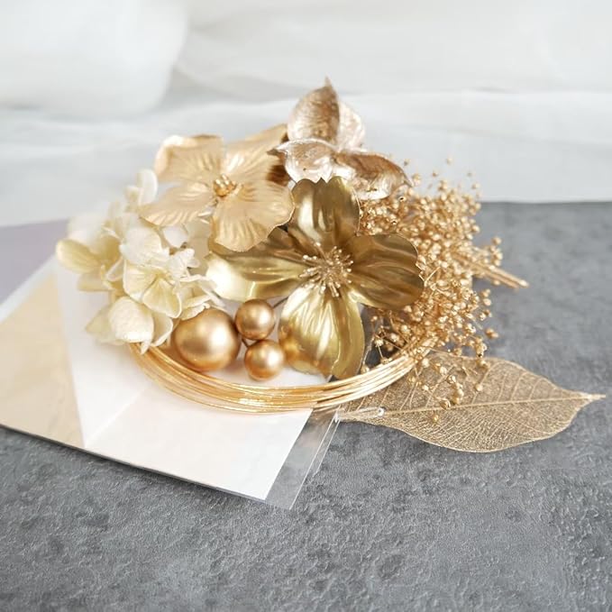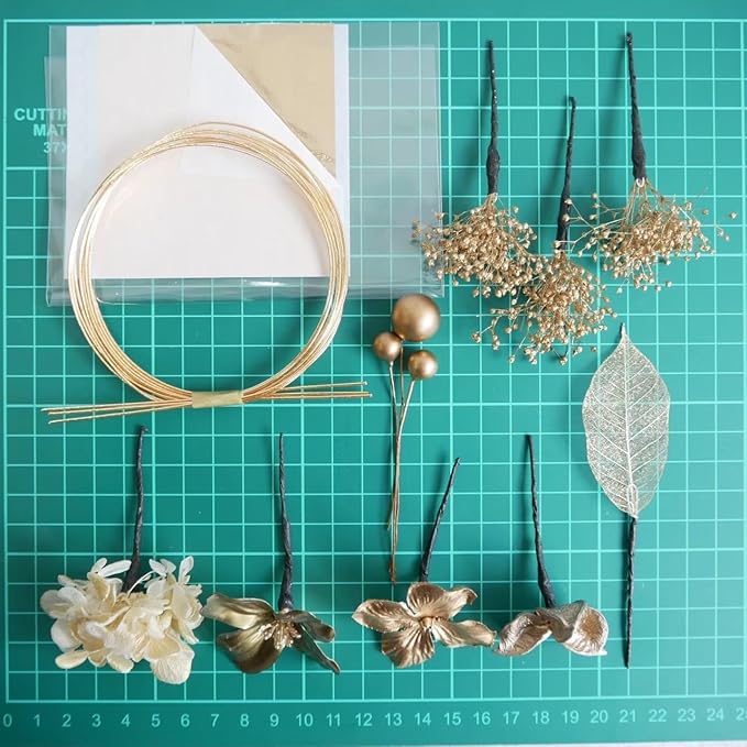 ゴールドのお花、水引(3本)、ゴールド系のパーツを組み合わせたセットです。