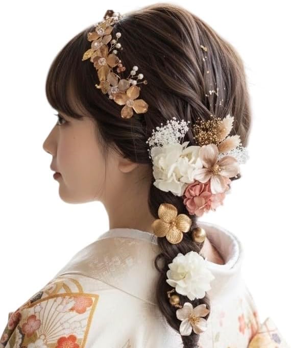 [Lomeri] ロメリ ゴールド カチューシャ ドライフラワーの髪飾り 成人式 卒業式 結婚式 袴 ゴールドE (ピンク)E24
