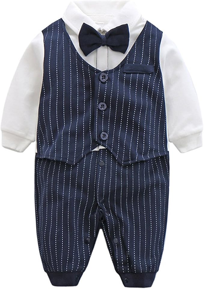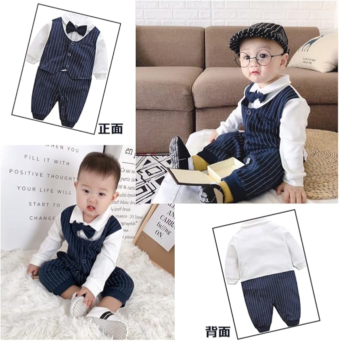 肌触りがとっても気持ちいい綿は、プリントが多様で、着ると紳士になる。かっこいい男の子フォーマルロンパースです。