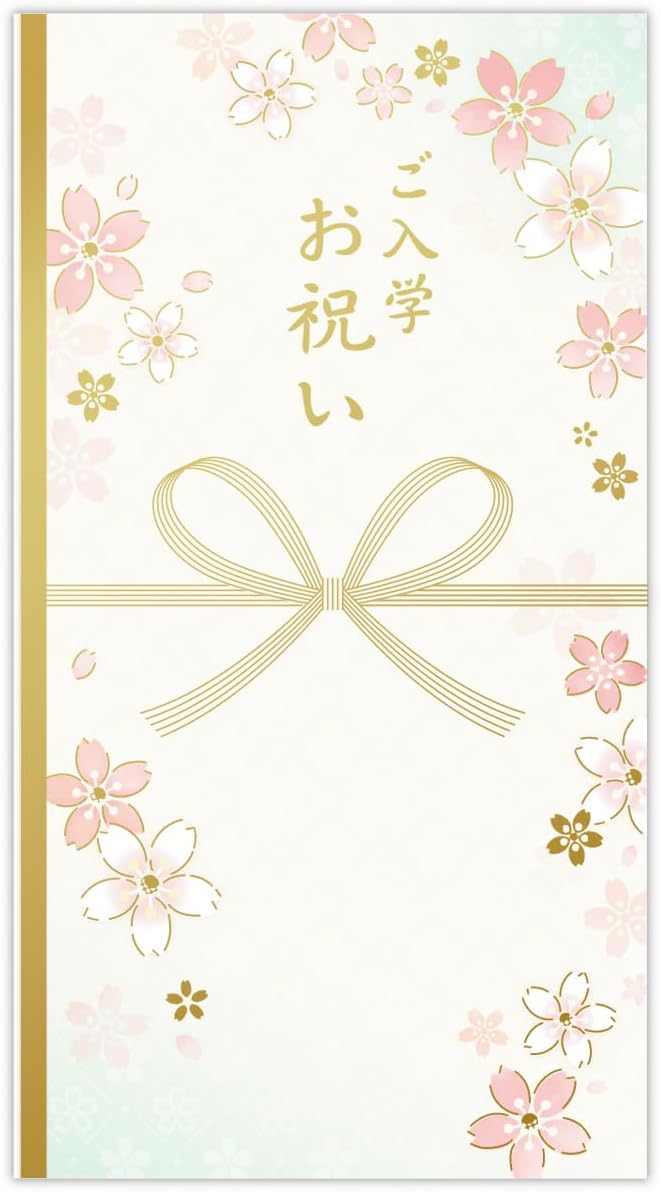 入学のお祝いに使えるご祝儀袋です。定番モチーフの桜をメインに、ミントグリーンのグラデーションをそっと加えてフレッシュな印象に仕上げました。
