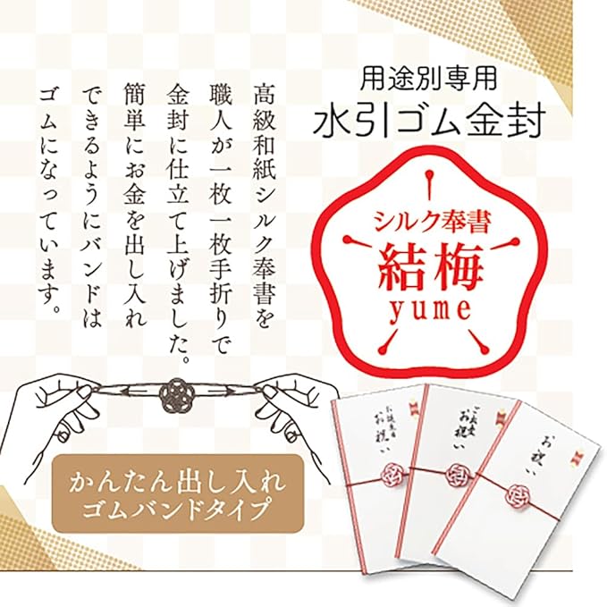 ●結梅シリーズ金封はバンドがゴムになっているので簡単にお祝金を出し入れできます!