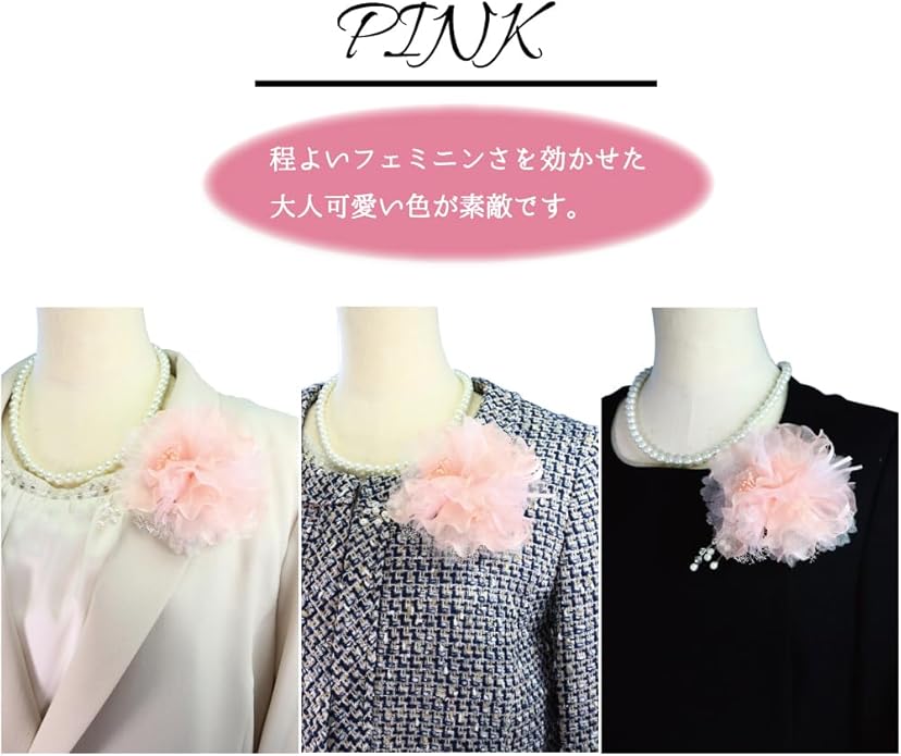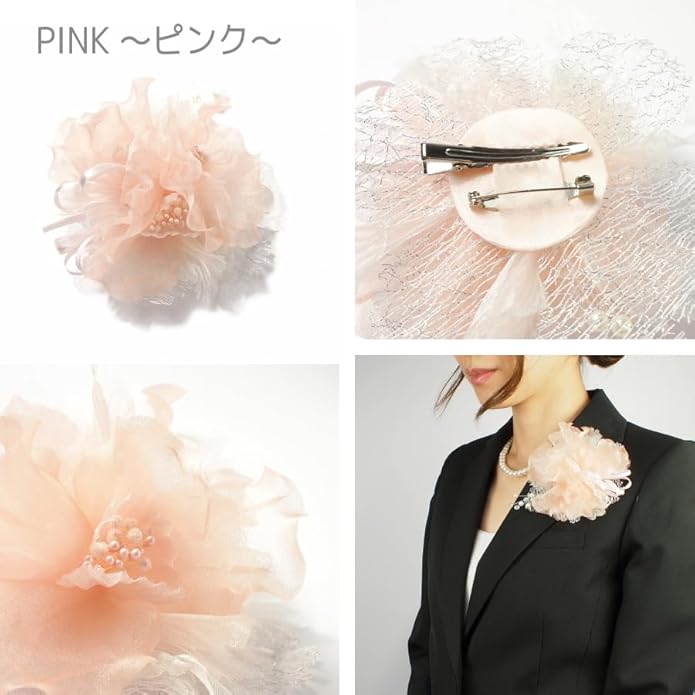 [クレインズコレクション] ふんわり シフォン コサージュ クリップ ピン レディース ピンク