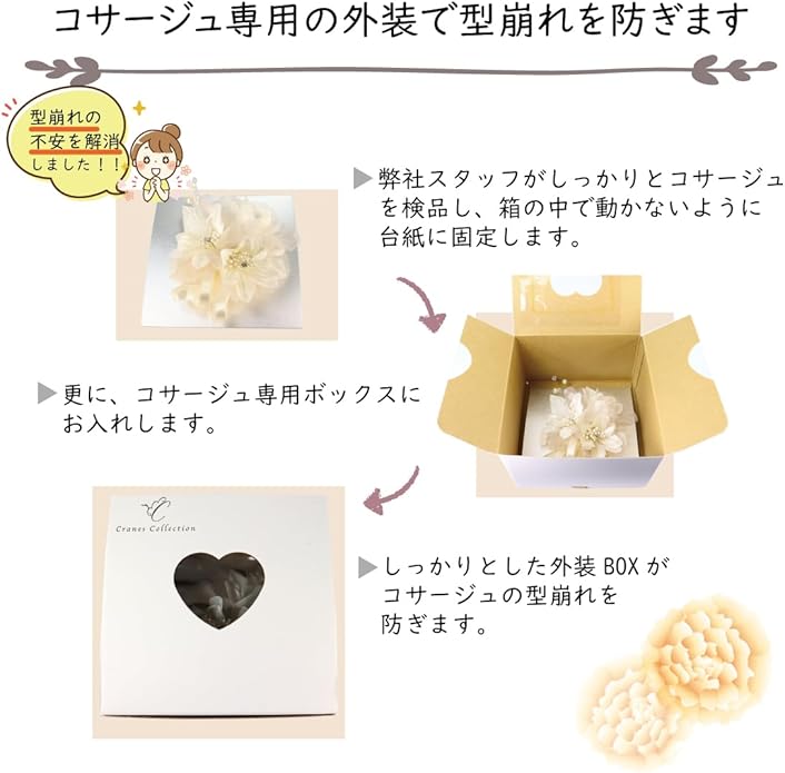 ■素材:合成繊維、プラパール、合金 ■生産地:台湾 ※金具は安全ピンとクリップの2WAYタイプです。※専用BOXケースに入れて発送いたします。