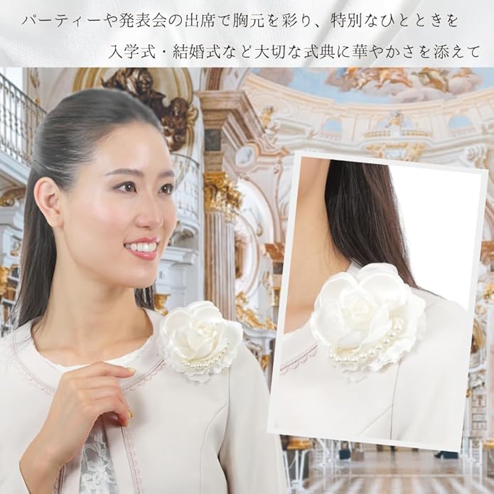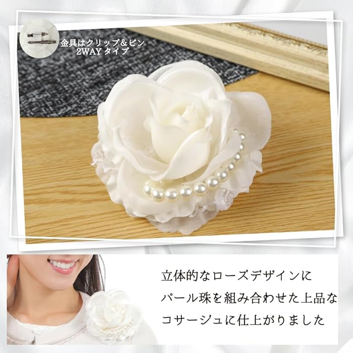 [クレインズコレクション] ローズ パール コサージュ ブローチ ピン クリップ レディース ホワイト