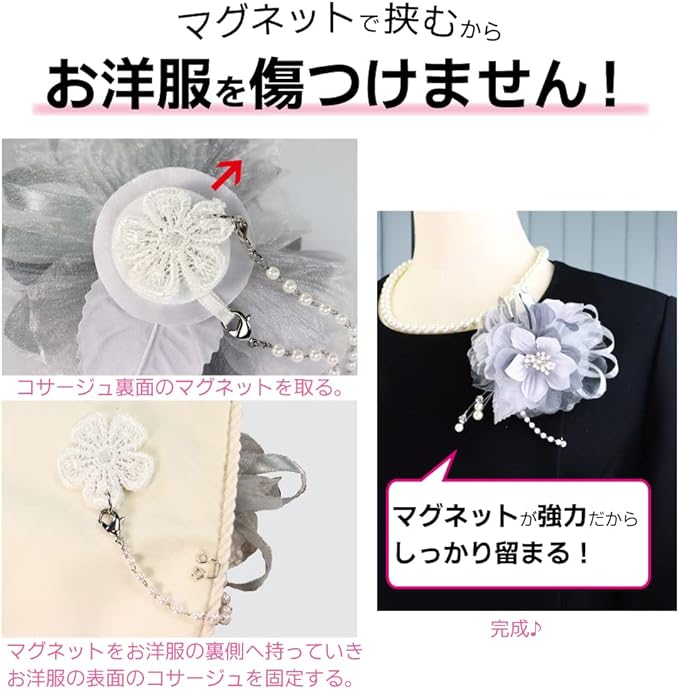[クレインズコレクション] マグネット リリー コサージュ ブローチ 挟むだけ 手作り フォーマル シーン や エレガント な装いに