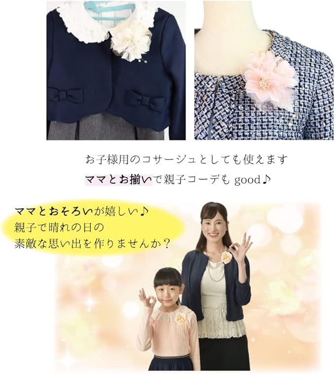 ■お子様や親子コーデにも:やや小さめの可愛らしいコサージュなので、お子様でもお使いいただけます。お揃いで親子コーデや色違いで親子コーデにぜひ★