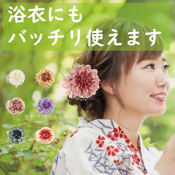 ■合わせやすいナチュラルカラー:柔らかな印象のナチュラルグラデーションを施したダリアです。上品で、お洋服を選ばず様々なシーンでお使いいただけます。あえてラメを装飾していないので、派手すぎずフォーマルにもカジュアルにもお使いいただけます。