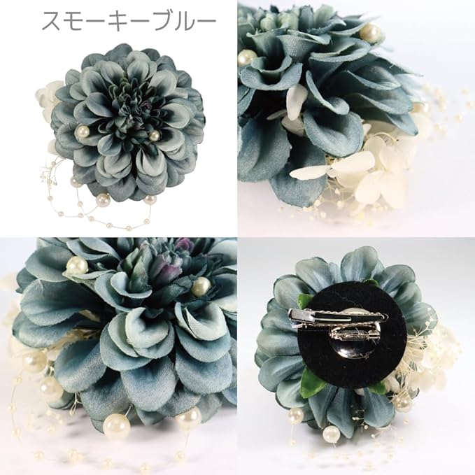 [クレインズコレクション] 日本製 ダリア コサージュ カスミ草 あじさい ブローチ クリップ ピン 2WAY フォーマル 入学式 卒業式 結婚式 ハレの日の特別なシーンに