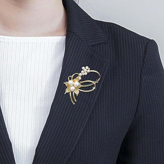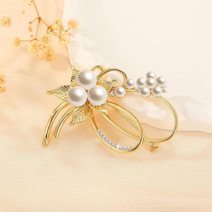 【高品質なパール】真珠ブローチは、6mmと8mmサイズのパールが使用されています。ブローチの針にクリップ式ペンダントを付ければ、ペンダントトップとしてもお楽しみいただけます。