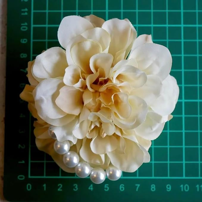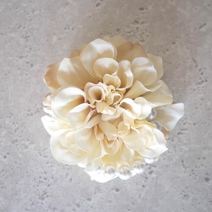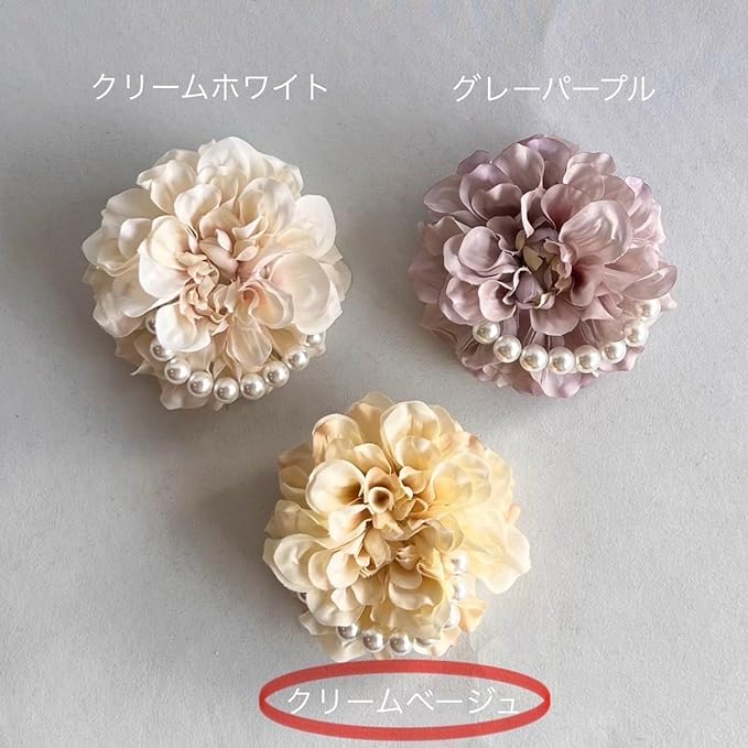 クリームベージュ《優しいベージュ》のダリアに大粒パールを合わせシンプルかつ上品なデザインに仕上げました。