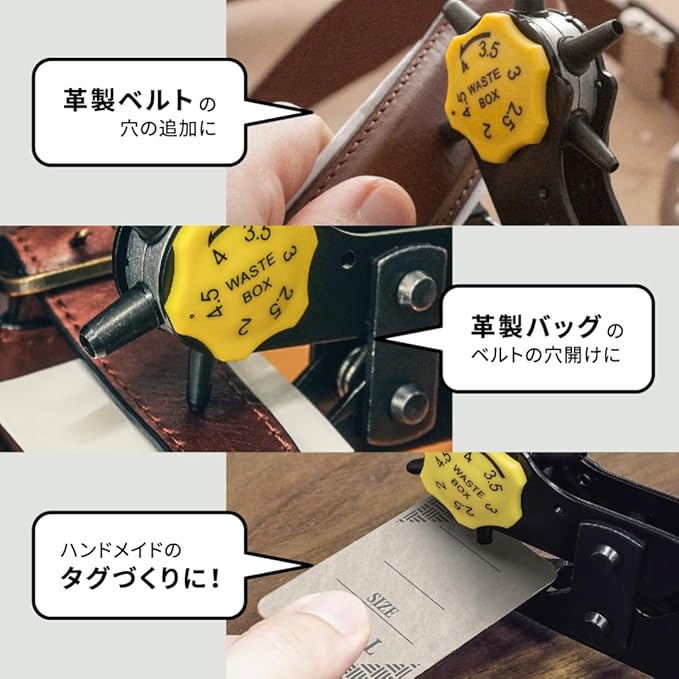 革・布・ゴム・ビニール・厚紙などの穴あけに。