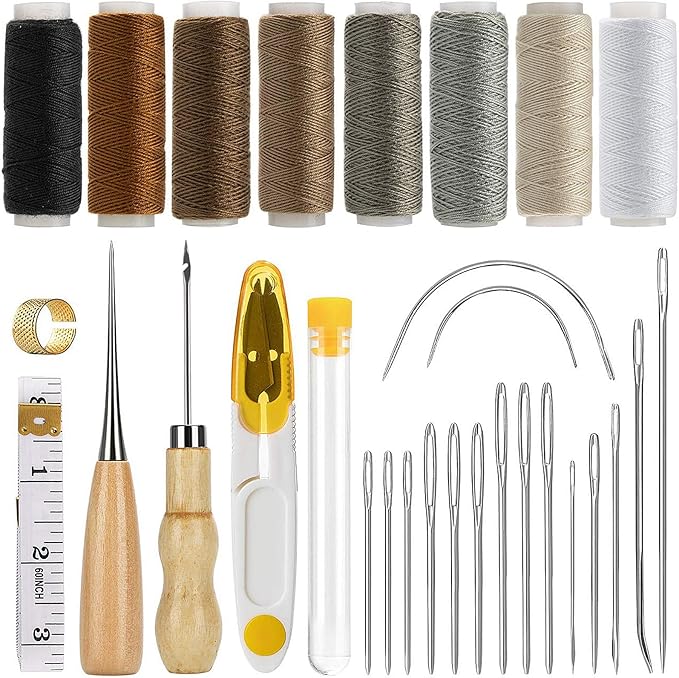 サムコス レザークラフト 革工具セット 裁縫工具 皮革工具 針 手作り 革用 レザー 紐 綿糸 手縫い 工具 DIY 縫製キット ザーツールセット (29個セット)