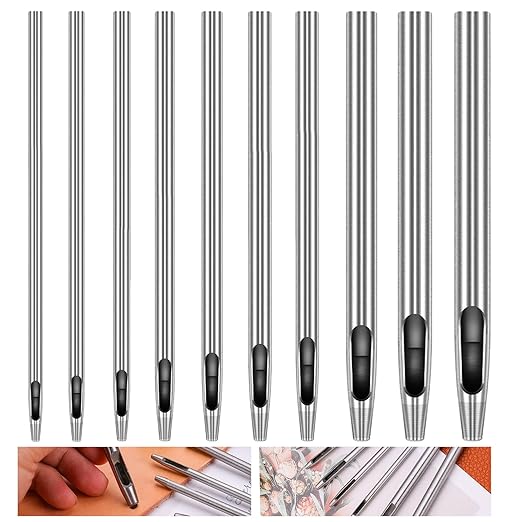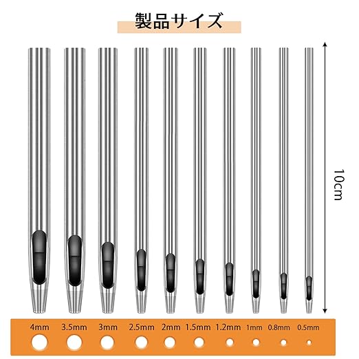 ✔【 10種類のサイズで多用途に対応 】0.5mmから4mmまでの10種類の穴径をセットでご提供。皮革、ベルト、プラスチック、ゴム、紙など、さまざまな素材に最適なサイズを選べます。DIYプロジェクトや日常の修理作業に幅広く活用可能です。