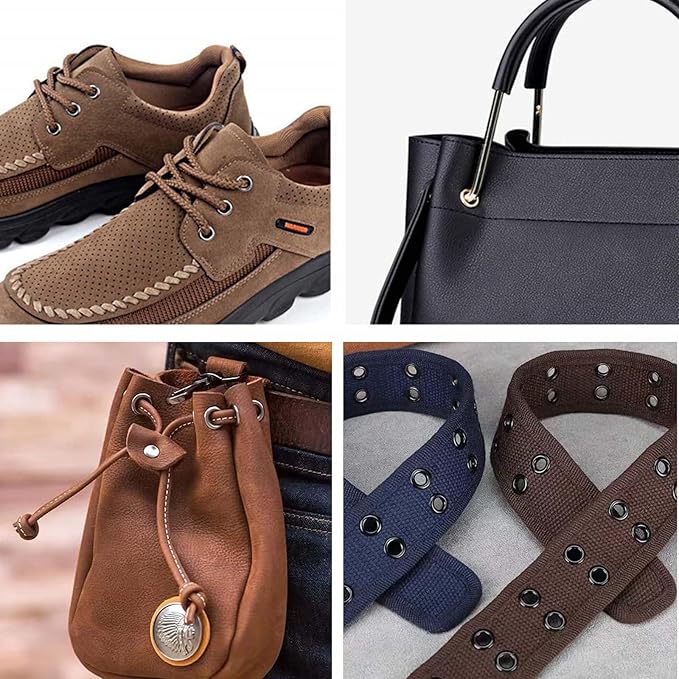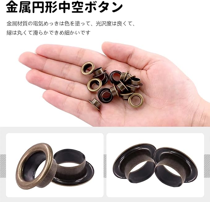 【取り付け簡単】パンチングツールでレザークラフトに穴を開け、ハンマーでグロメットを押し付けます。これは、クラフトに装飾を追加するために非常に適しています。
