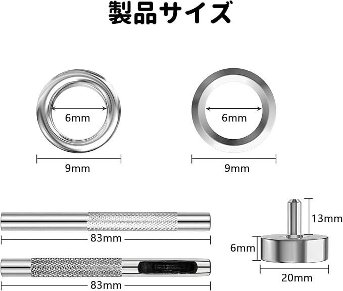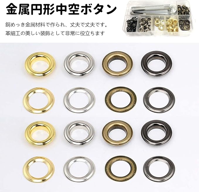 ハトメ キット 【100枚セット+3つの道具】ハトメ 6mm 両面ハトメ ファブリックレザー製品、衣類、帽子、バッグ、靴、ジーンズアクセサリーなどの収納ボックス付き手芸DIYクラフト材料