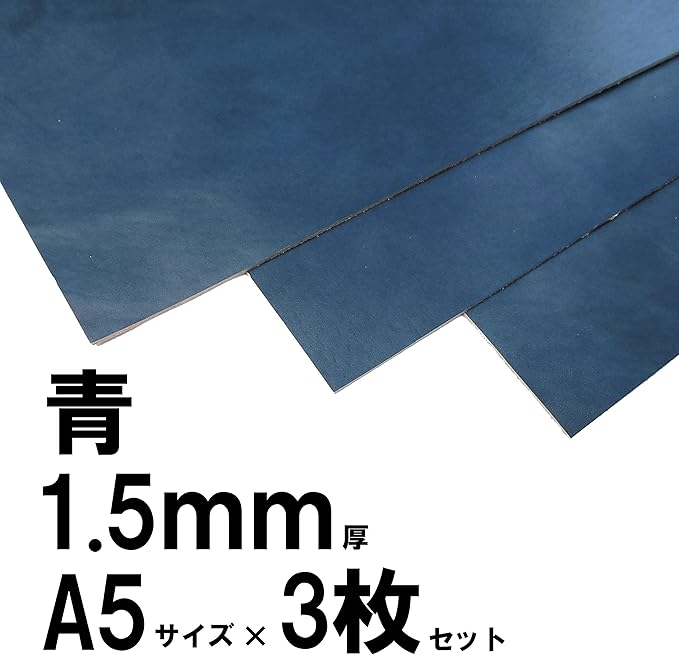 ヌメ革 ワケあり (青, 1.5mm A5) 3枚