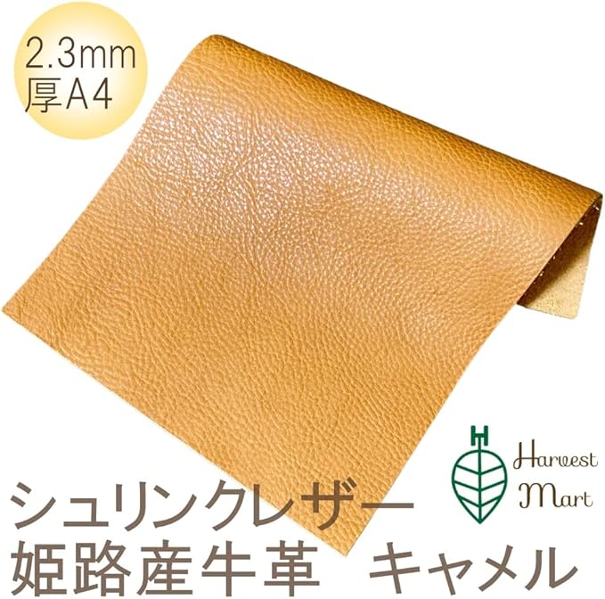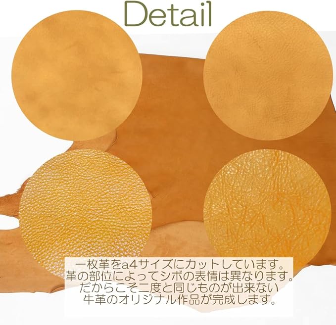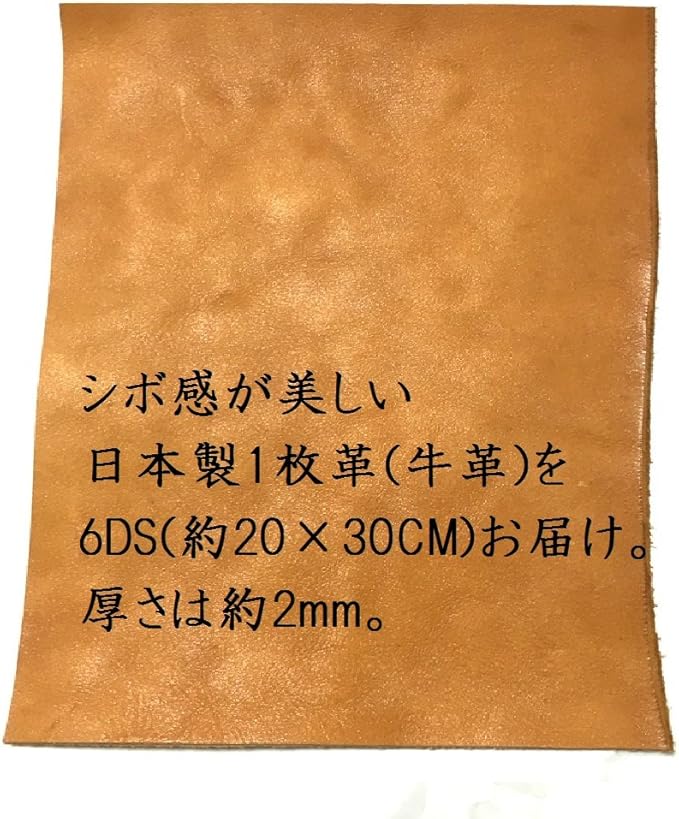 レザークラフト 材料 皮 革 日本産 牛革 ヌメ革 シュリンク 植物 タンニンなめし レザー 厚さ 2.3mm 6 デシ 約A4サイズ 6DS 約20cm 30cm