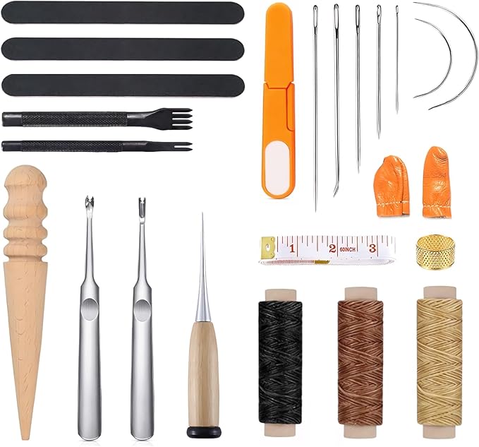 サムコス レザークラフト 革工具セット 裁縫工具 皮革工具 針 手作り 革用 レザー 紐 ワックス糸 手縫い 工具 DIY 縫製キット ザーツールセット (24個セット)