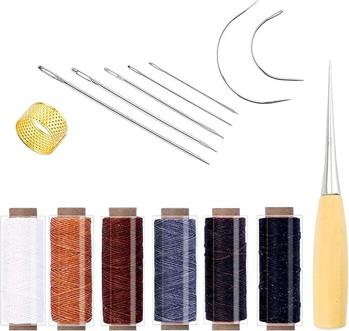 サムコス 蝋引き糸 0.8mm 6色 50m セット 革用 レザークラフト レザークラフト糸 手縫い針 指守り輪 縫い糸用針 ロウ引き 革 DIY 手芸 初心者用 (15)