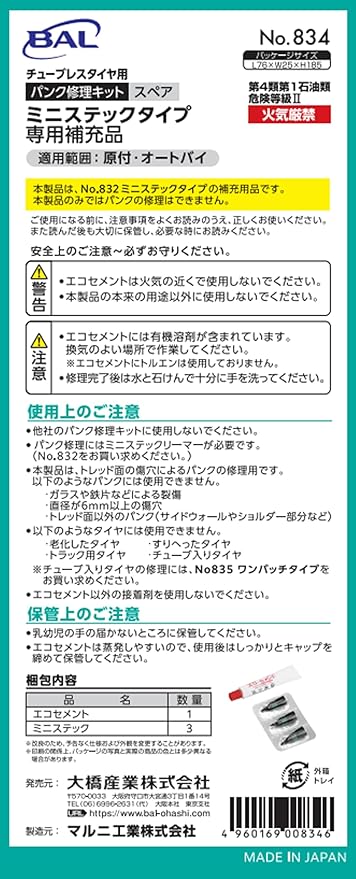 BAL(大橋産業) パンク修理キット ミニステック 補充用 No.834