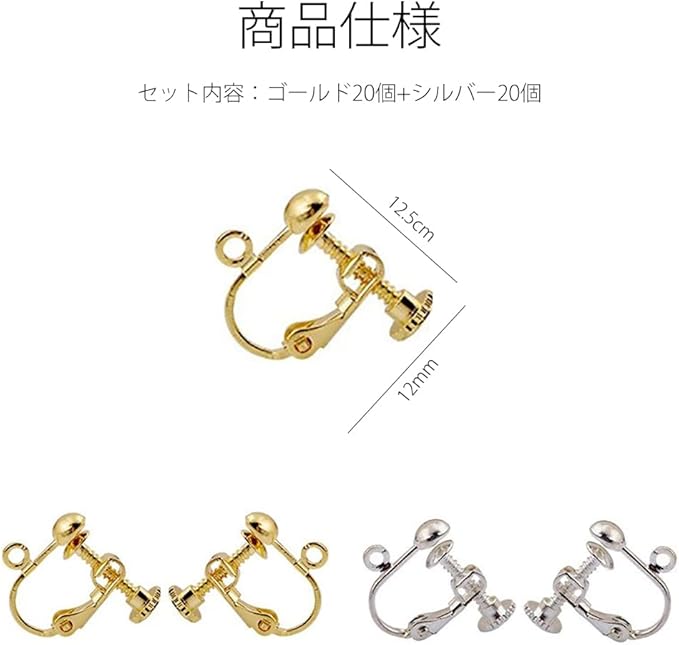 限定商品 イヤリングパーツ 20ペア 40個入 丸皿タイプ ジュエリー イヤリング金具 ネジバネ式 ピアスパーツ DIY ハンドメイド 基礎金具 (シルバー*20+ゴールド*20)