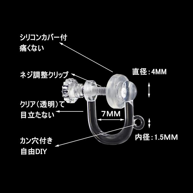 イヤリング イヤリングパーツ ネジ式調整クリップ クリア MUNCVY DIY 丸皿タイプ カン付き 8ペア16個 シリコンカバー付 アレルギー対応 ノンホール ハンドメイド 基礎材料 素材 アクセサリーパーツ