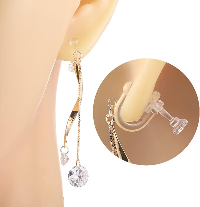 【シリコンカバー付】透明の樹脂タイプが目立ちにくくオススメです、装着時のいやな痛みもこれで軽減されます、一日使用しても痛みが減少します、シリコンのクッションが耳たぶを保護してくれます。