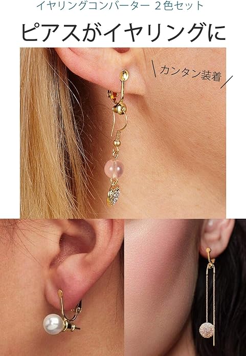 ピアスをイヤリングに変換するイヤリングコンバーター いただいたけれど穴がなくて付けられないピアス コンバーターを使えばイヤリングとして着用できます。 ゴールドとシルバーの2色セット(2組4個)