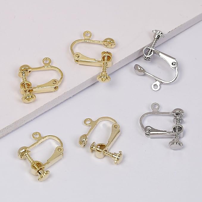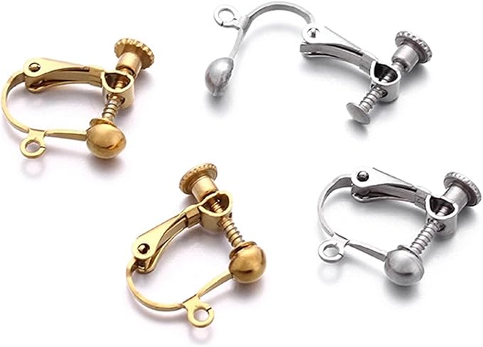 FamGift イヤリングパーツ 20個 DIY 手作り用 ハンドメイド資材 耳穴なし アクセサリーパーツ カン付 ネジバネ 材料 退色防止コーティング済 金具 アクセサリーパーツ(ゴールド+シルバー各10個)