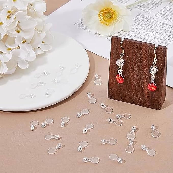 カボション貼り付けパーツ 100個セット 透明樹脂製接続用 プラスチック板 ハンドメイドアクセサリーパーツ ピアス イヤリング用 手芸 材料 クリア DIY 大量 ジュエリー用