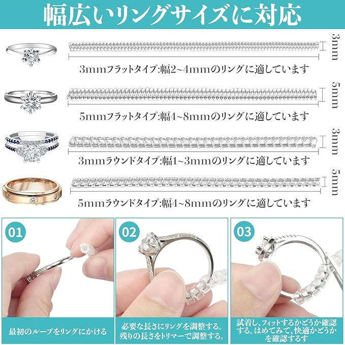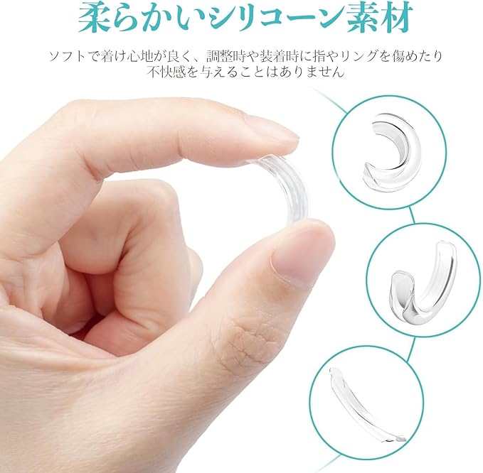 指輪 サイズ調整 リングアジャスター 12点セット 透明 指輪 ズレ防止 リサイズスペーサー 着脱簡単 脱落防止 滑り止め 男女兼用 DIY サイズ調整