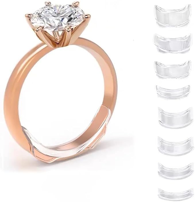 このリングアジャスターは、指輪のサイズ調整に最適なアイテムです。8サイズ(幅1mm~10mm)に対応しており、ピンキーリングから通常の指輪まで幅広く使用できます。柔らかいシリコン素材で作られているため、指に優しくフィットし、長時間の着用でもストレスを感じません。滑り止めデザインでズレ防止効果があり、リングが緩む心配もありません。透明な素材なので、リングの美しさを損なわず、自然な着け心地を実現します。男女兼用で、問題指やサイズ調整が必要なリングにぴったりです。リングストッパーとしても機能し、宝石の損失を防ぎます。リングサイズの計測や調整が簡単にできるため、ストレス解消にもつながります。リングテープやリングストラップとしても活用可能で、リングの台座としても便利です。