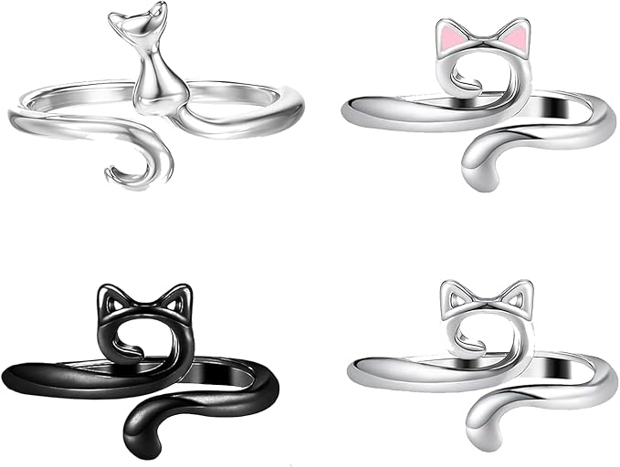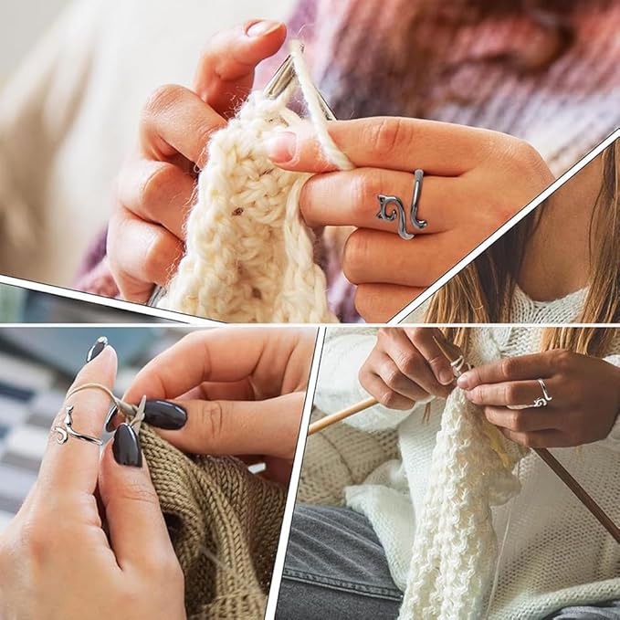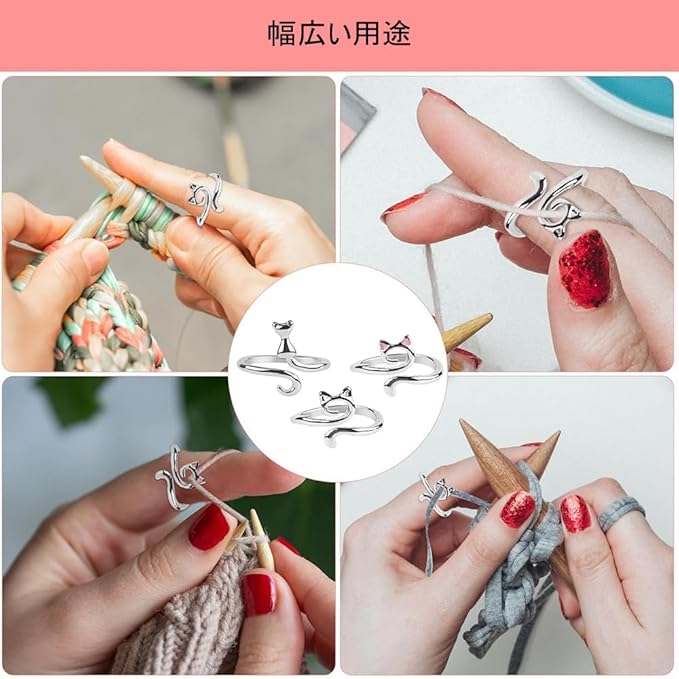 [DFsucces] かぎ針編みリング 4個入り 猫耳かぎ針編み糸リング 調節可能 指ホルダー 編み物用具 かぎ針を指で固定するのに適しています