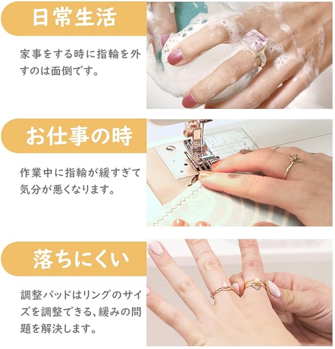【実用性】1パックで合計8サイズ、リングサイズを0.5-2サイズ縮小、ルーズリングに最適、リングが指から滑り落ちるのを防ぎます。