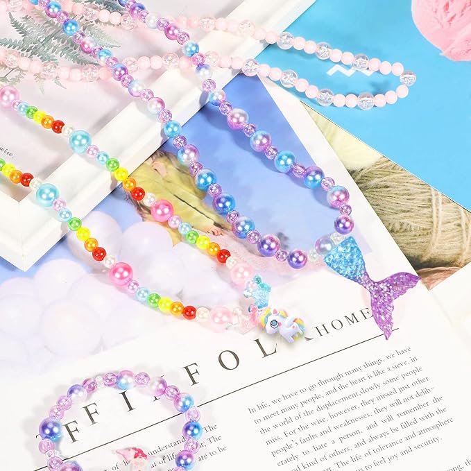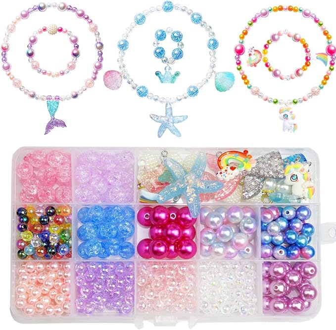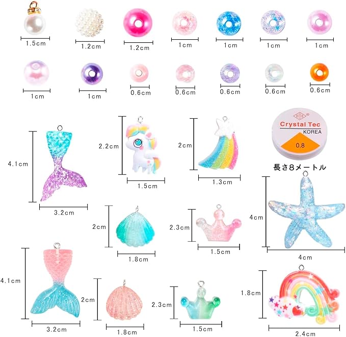 このビースキットには、人魚、ヒトデ、シェル、ユニコーン、レインボー、真珠など、さまざまな繊細なチャームが含まれています。ビーズにはさまざまなサイズと色があります。それは子供たちが彼らの創造性を十分に発揮し、彼ら自身のためにユニークなジュエリーを作ることを可能にします!