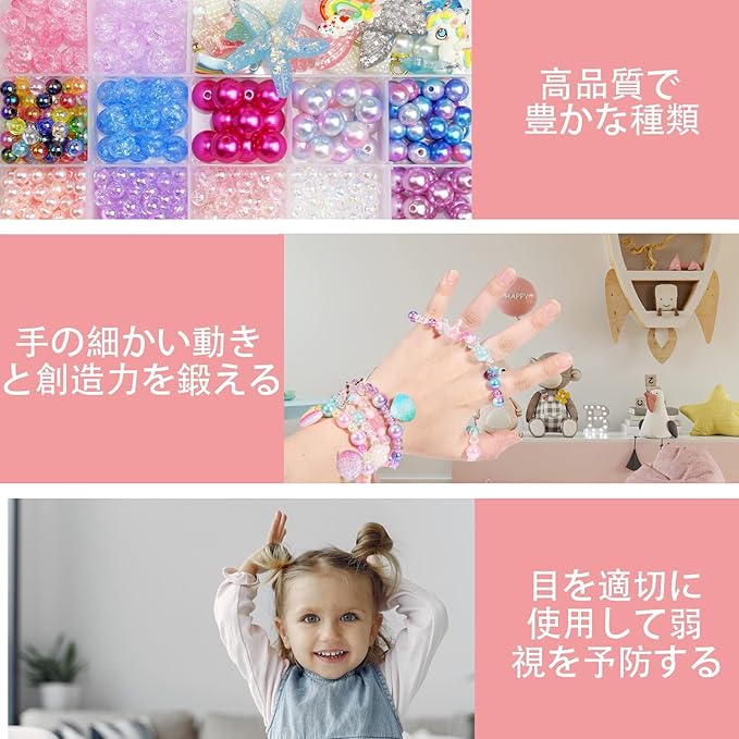 子供たちに楽しみをもたらすだけでなく、創造性と想像力を発達させ、手と目の協力と細かい運動を改善するのに役立ちます。女の子のパーティー、DIYアクティビティ、アートクラフトなどに最適なDIYジュエリー作成キットです。6歳以上のお子様に使用をお勧めします。