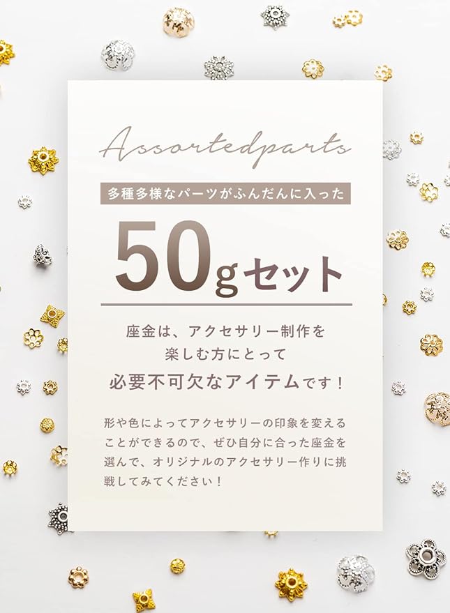 【京珠堂】座金 ビーズ アクセサリーパーツ 50g 金古美 アソートセット ゴールド シルバー (ランダム)