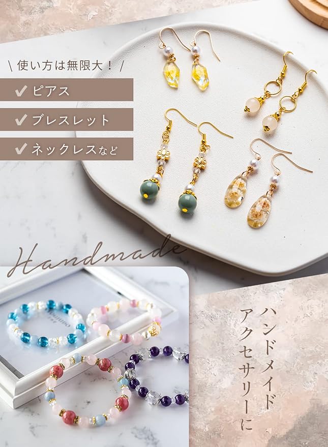 ✓ハンドメイドのピアス・ブレスレット・ネックレス・つまみ細工などに使えるパーツ約18種類、約700個!
