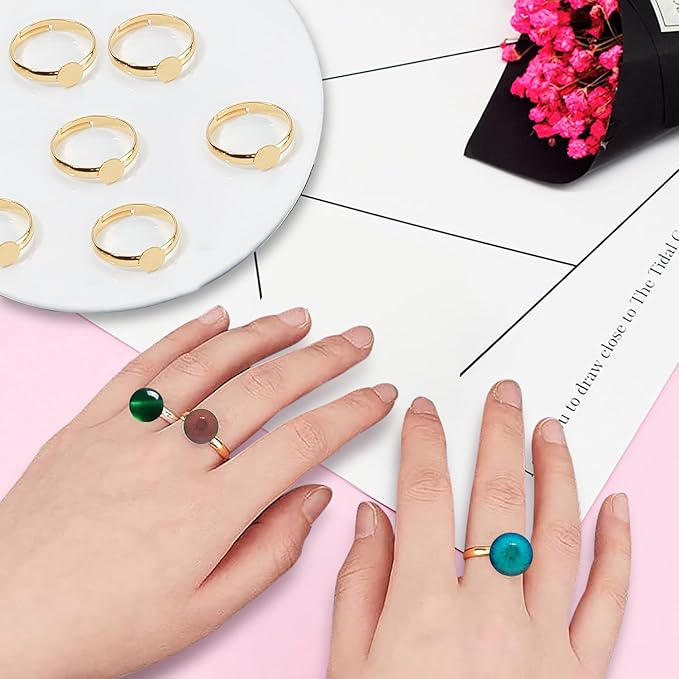 パッケージ内容:パッケージには、シルバーのフラットラウンドリングベゼルトレイ25個が含まれています、豊富な量。リングパーツ(調節可能):16mm 台座: 8mm。カラー:金。