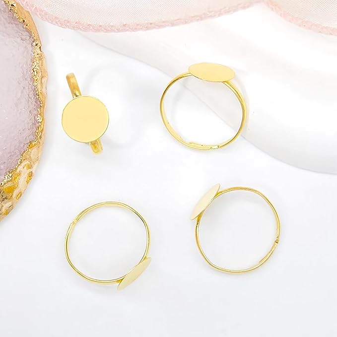 ADOFUNリング 8mm台座 25個 リングパーツ ゴールド フラットラウンド 調節可能 指輪用ベース 真ちゅう製 丸型指輪トレイ 指輪作り ハンドメイド アクセサリーパーツ DIY パーツ リング作り金具 手芸 材料