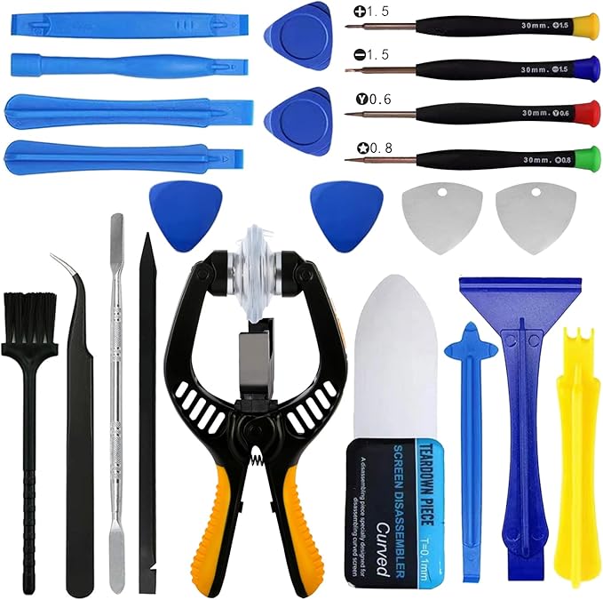 Hodyludy スマホ 分解ツール 23点セット スマホ分解工具 スパッジャー 分解用へら 曲面スクリーンを分解修復 0.1mm 超薄 オープナー 大型吸盤 ピンセット ドライバー スマホ修理キット プラスチック 金属 スマホ修理ツール ノートパソコン タブレット バッテリー交換用 携帯修理キット