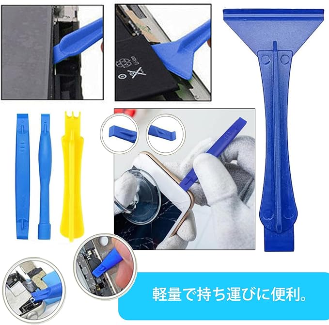 このスマホ分解ツールは、シェルを開くさまざまな状況に応じて、(素材・厚さ・幅違い)さまざまなスパッジャーを提供します。